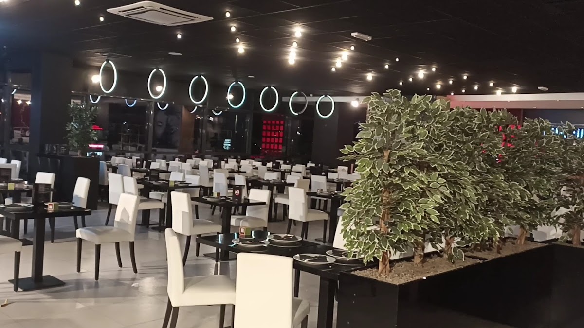 Nice modern neon ambience, classy staff. It's one big room, so it can get noisy in busy times, but one of the best tasting infinite pizza out there
