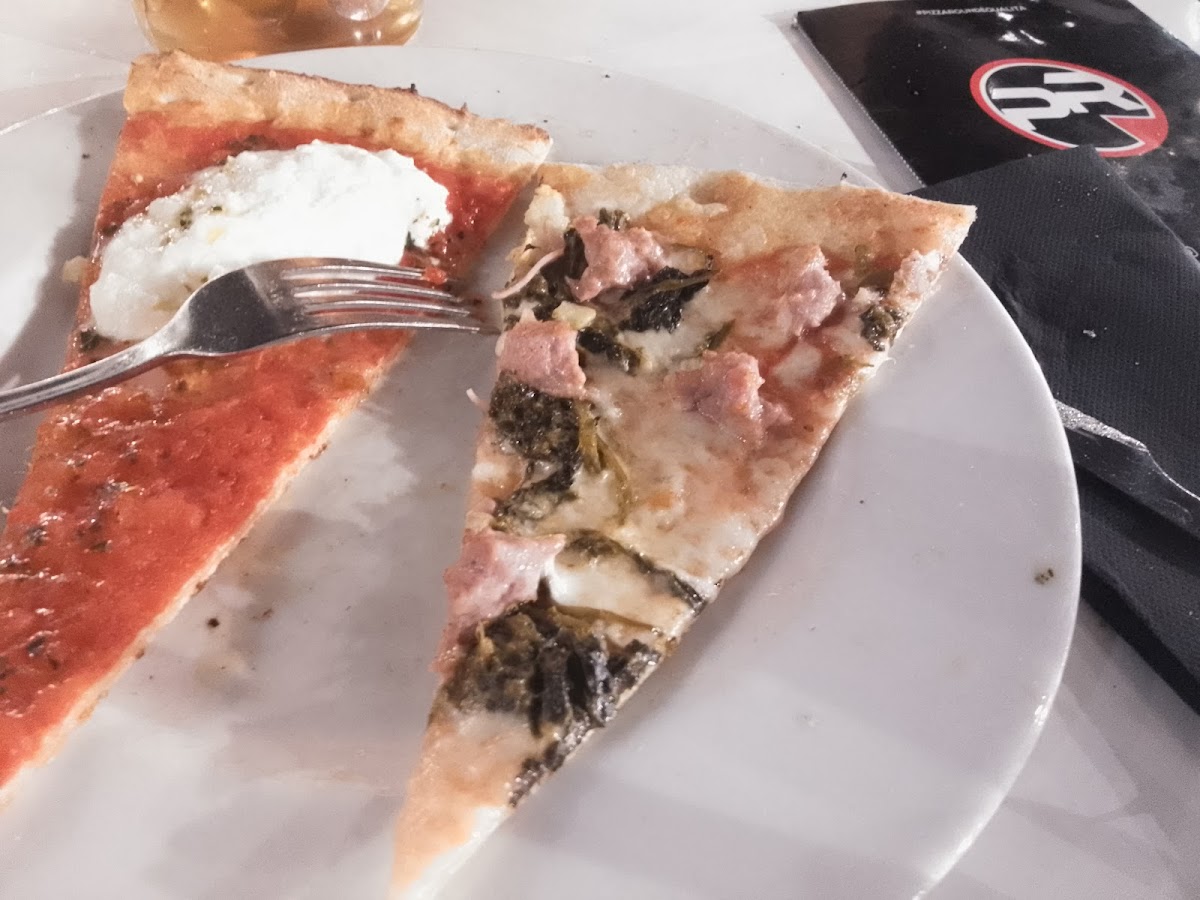 When we arrived here we found an infinite waiting queue, but the staff were great! They managed the absolutely high number of people with great professionalism: in less than 20 we were looking at the menu, sitting at our table. You can choose different options depending on the size of the beverage you want to drink. In other places like this, where you don't choose your pizza from a menù, but you can eat slices with different topping, usually they serve always the same flavors; NOT HERE! There is a big variety and the taste is great. To make things better, when you're done eating pizza, you can start with the all you can eat dessert round! I also recommend this place for birthday dinners, it's great for groups.